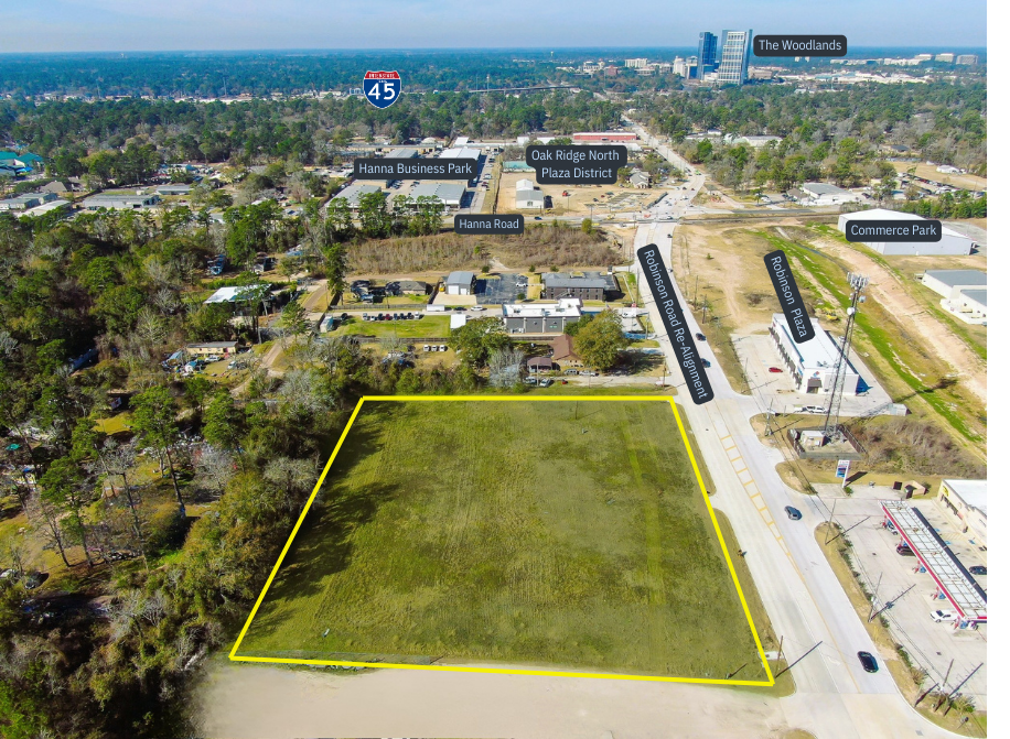 Rare opportunity to acquire approximately ±3 acres of cleared commercial land strategically positioned along Robinson Road in Oak Ridge North, TX — directly east of the Hanna Road intersection and across from the emerging Oak Ridge North Plaza District mixed-use development.